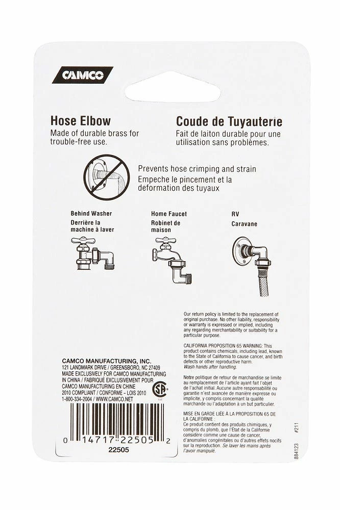 Camco 90 Degree RV Water Hose Brass Elbow – 22505