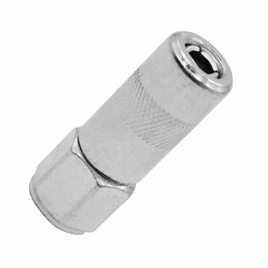 - Standard jaw-type coupler features spring-loaded ball check valve