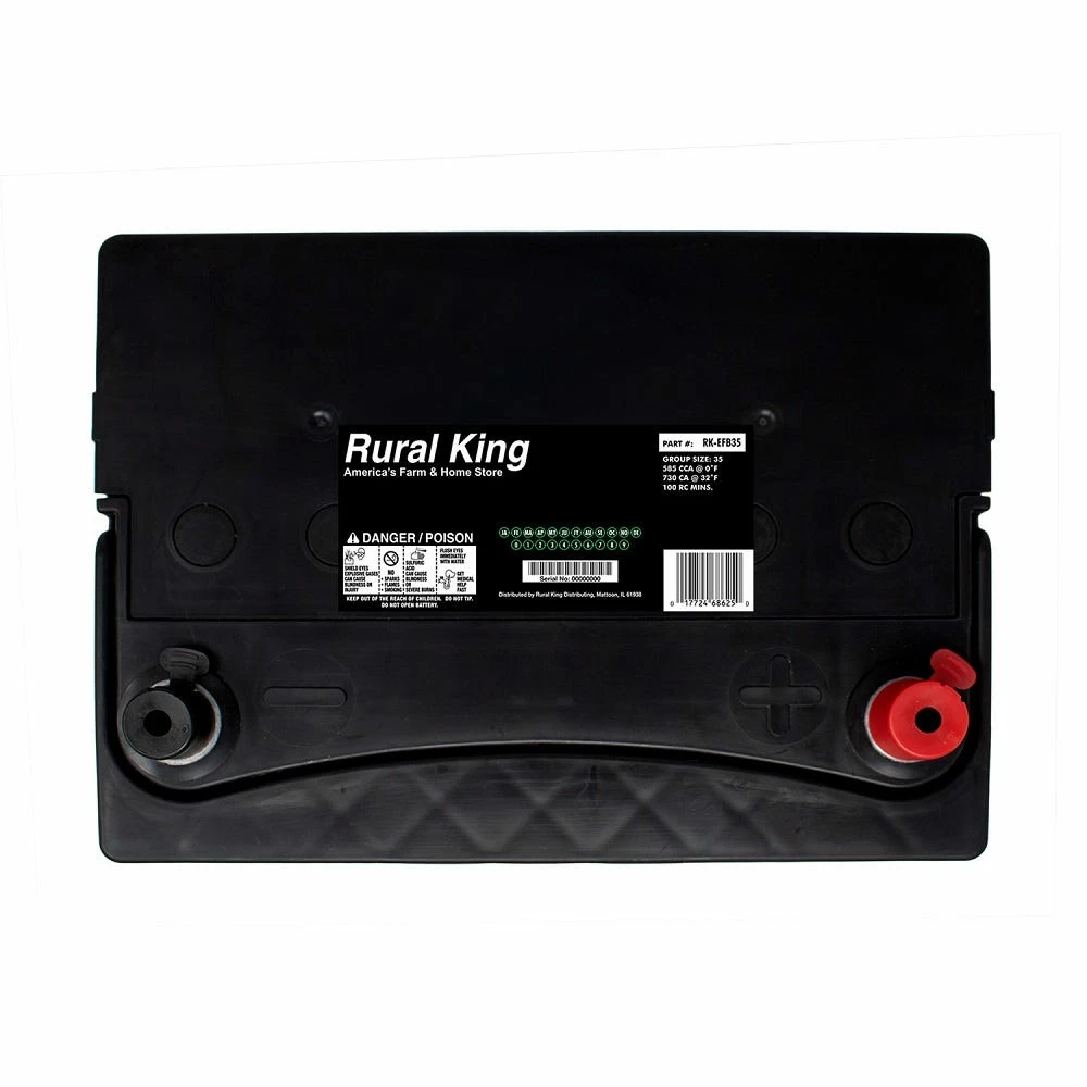 Rural King Premium EFB, powered by EFB (Enhanced Flooded Battery) technology, is engineered to significantly improve charge acceptance and increase cycle life to ensure ample power for vehicle safety and entertainment features.