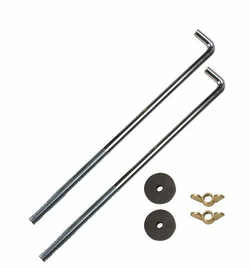 Replacement battery hold-down rods for battery holders. L-style hook design, 10″ length. Includes (2) rods, insulators and wingnuts.